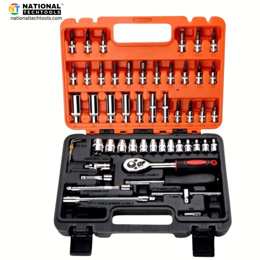 Tackle any mechanical or DIY task with confidence using this 53-Piece CR-V Socket Set, crafted from premium Chrome Vanadium Steel (CR-V) for superior strength, durability, and corrosion resistance. Ideal for professionals, mechanics, and serious DIY enthusiasts, this comprehensive set includes a wide variety of metric and SAE sockets, tools, and accessories—all housed in a rugged, blow-molded black carrying case for easy transport and storage.