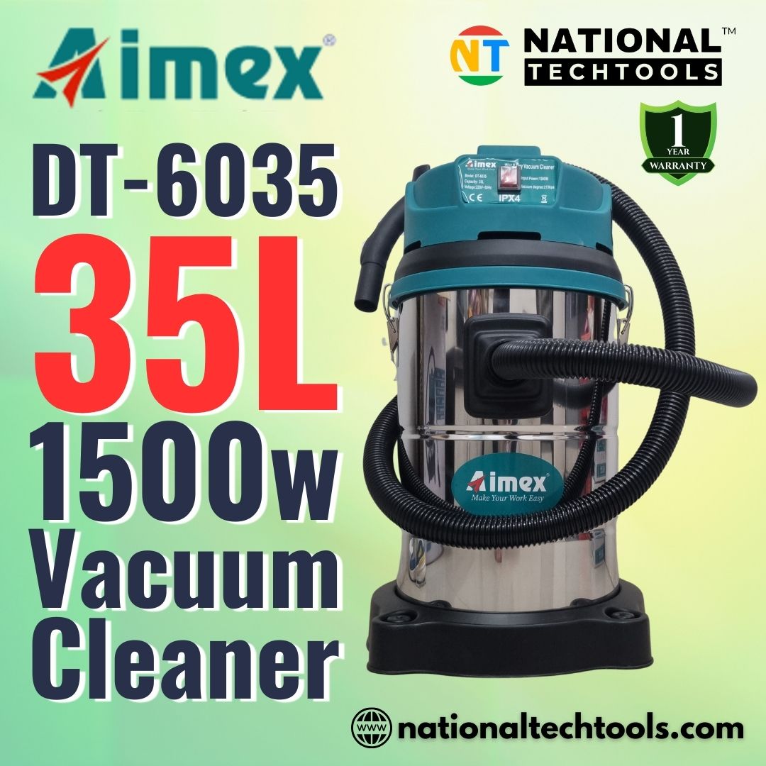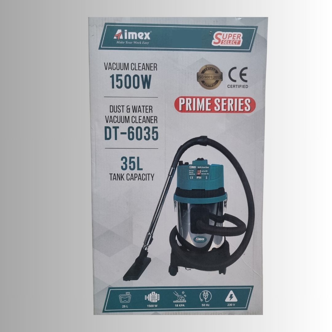 The Aimex DT-6035 Dust & Water Vacuum Cleaner from the Prime Series is engineered for efficient and reliable cleaning in demanding environments. Equipped with a 1500W high-performance motor, this vacuum delivers strong suction power suitable for both dry dust and liquid waste.