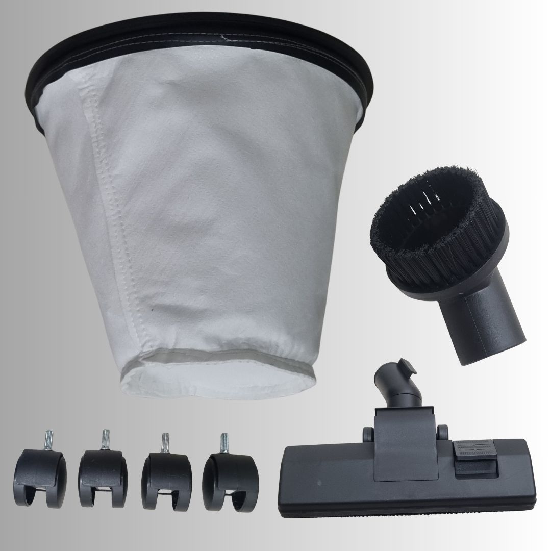 Its large 35-liter tank capacity allows uninterrupted cleaning over larger areas, reducing the need for frequent emptying. Designed for durability and ease of movement, the vacuum features a sturdy body, flexible hose, and smooth-rolling wheels for convenient operation.
