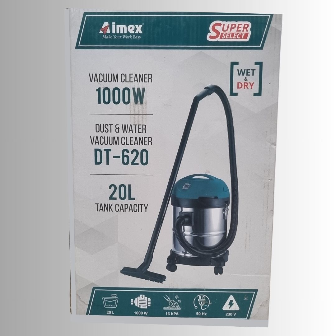 The Aimex DT-620 Dust & Water Vacuum Cleaner from the Super Select Series is designed to deliver reliable cleaning performance for both dry dust and liquid spills. Equipped with a 1000W high-efficiency motor, this vacuum provides strong suction power while maintaining energy-efficient operation.