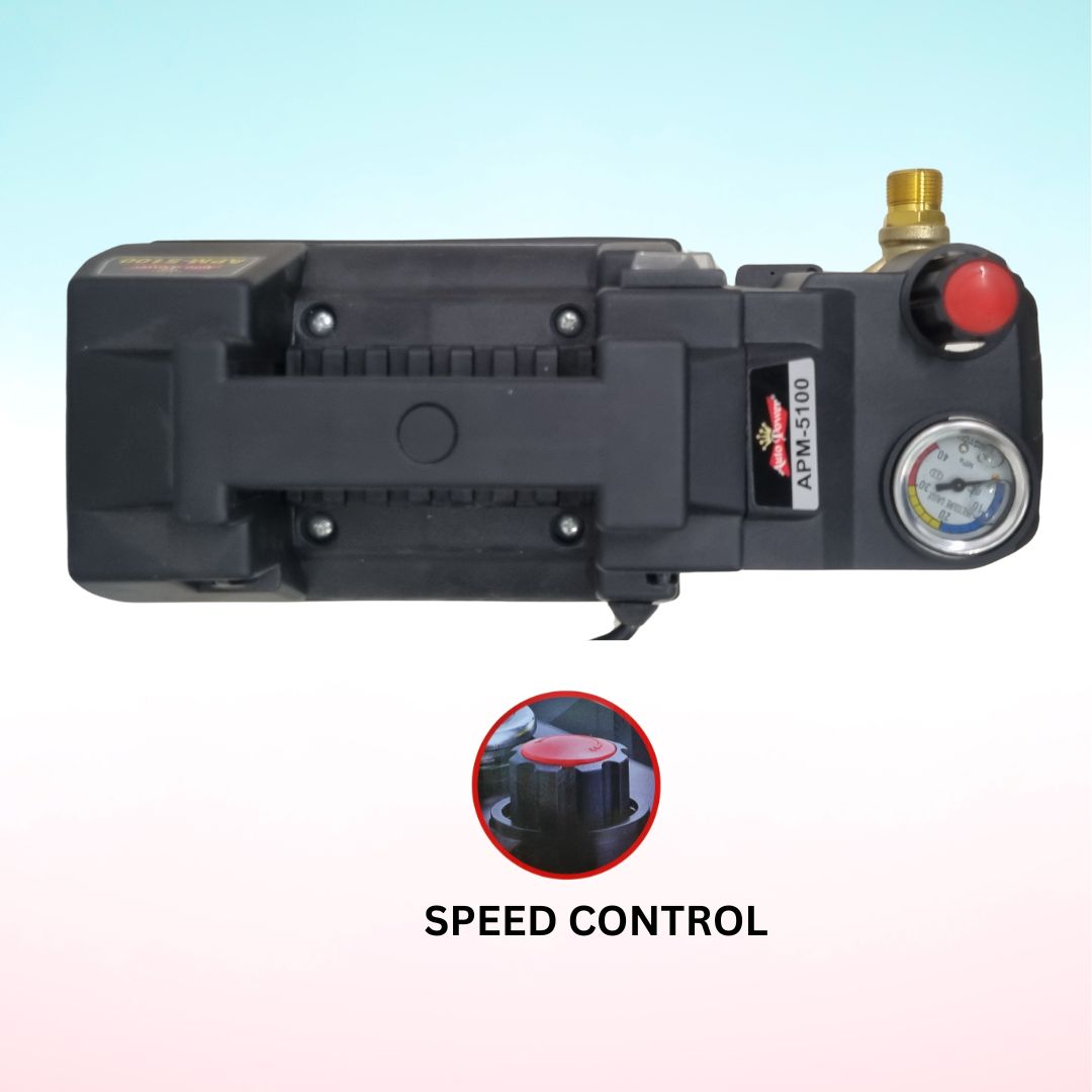 Equipped with a 2500W high-performance motor, the APM-5100 generates a strong working pressure of 250 bar, making it effective for removing stubborn dirt, grease, oil, mud, and surface contaminants. With a high water flow rate of 18 liters per minute, it ensures faster cleaning and excellent surface coverage.