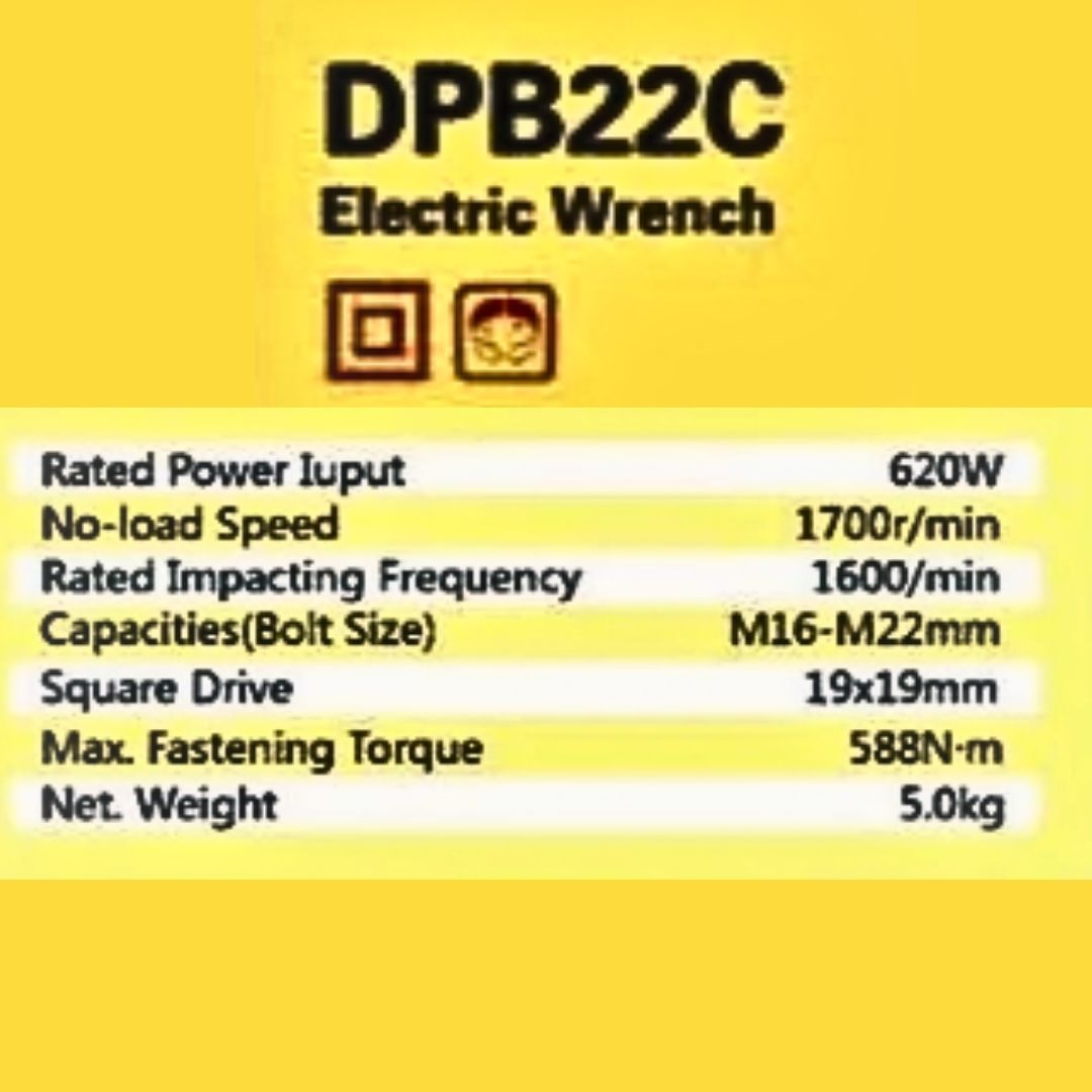 The DongCheng DPB22C 620w Electric Impact Wrench delivers strong performance for tightening and loosening large bolts with ease. Equipped with a high-efficiency motor and high torque output, it ensures consistent and dependable operation in demanding environments.