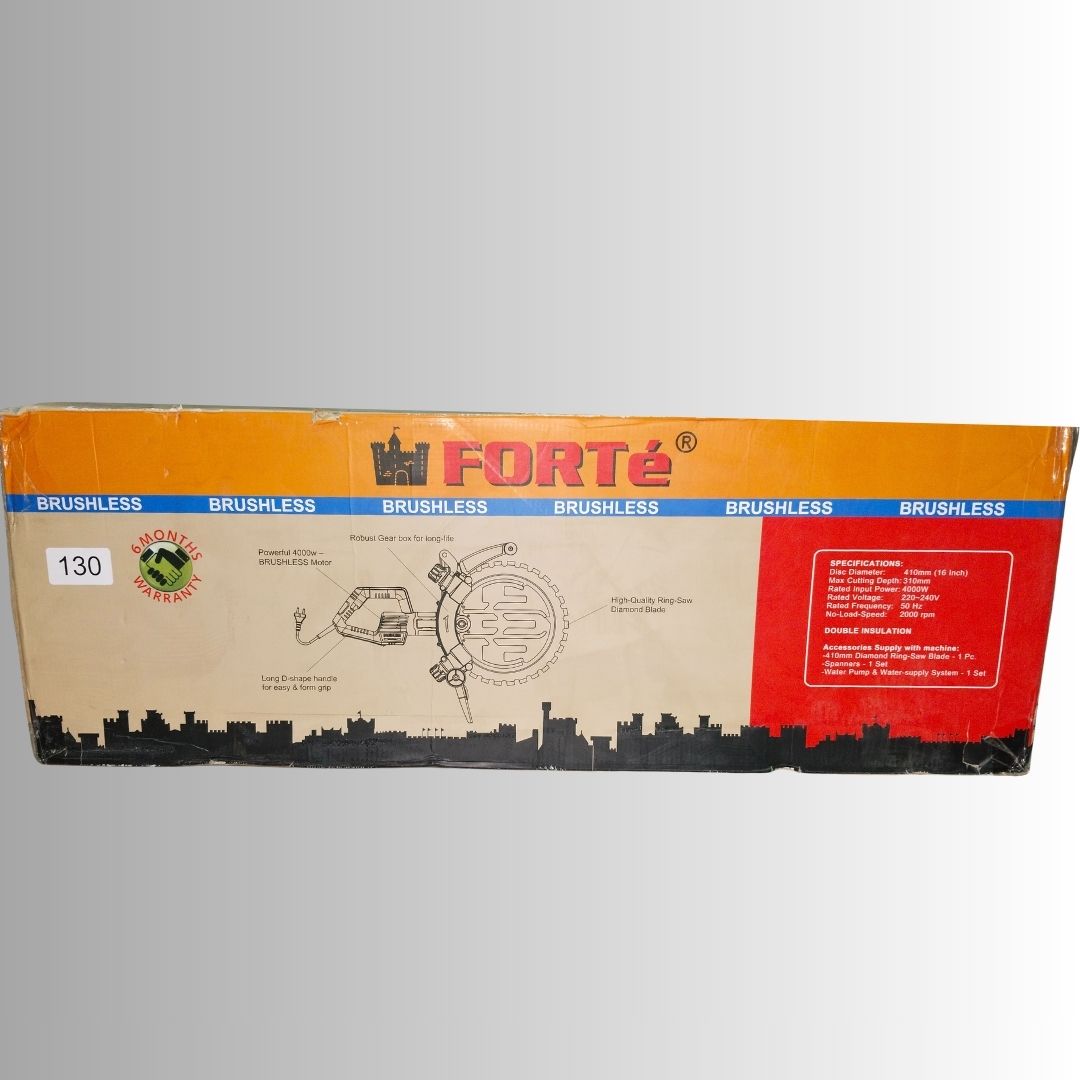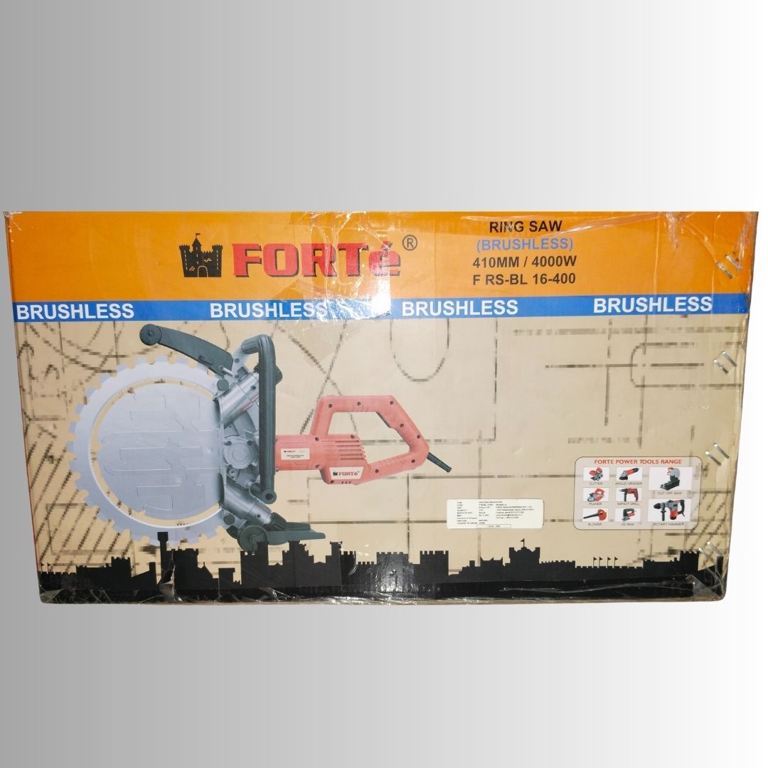 The FORTÉ Brushless Ring Saw FRS-BL 16-400 is a powerful, professional-grade cutting machine designed for deep, precise, and continuous cutting in concrete, reinforced concrete, stone, bricks, and masonry. Powered by a high-performance 4000W brushless motor, this ring saw delivers superior efficiency, longer motor life, and reduced maintenance compared to conventional brushed machines.