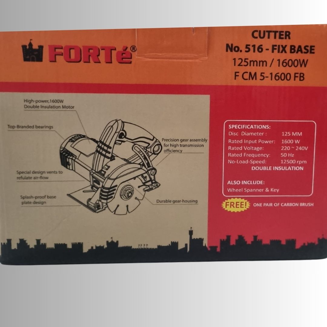 The Forte F CM 5-1600 FB Cutter is engineered for precision cutting tasks in construction and finishing work. Equipped with a high-power 1600W double insulation motor, this cutter delivers strong and consistent performance for cutting marble, tiles, granite, and similar materials.