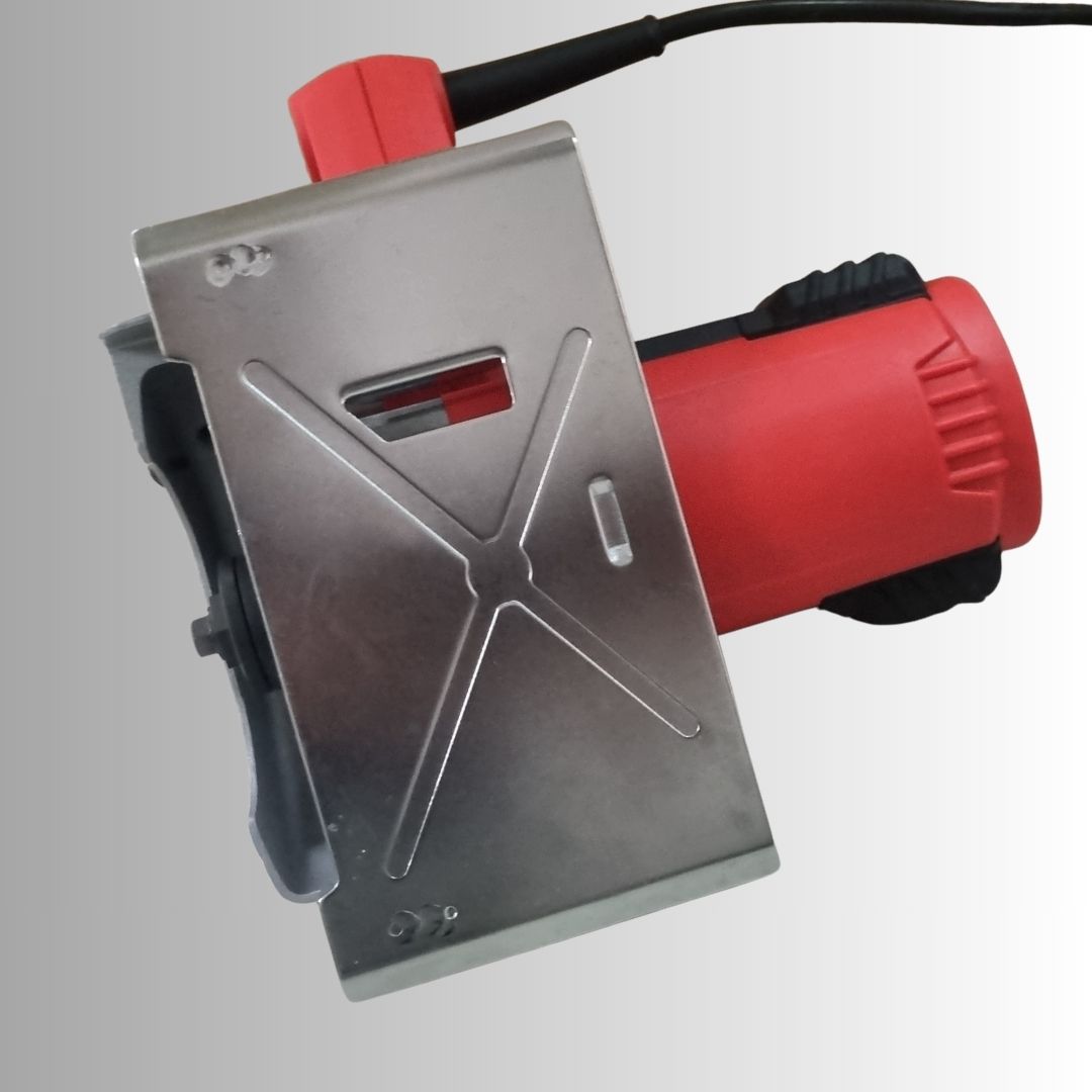 The machine supports a 125mm disc and operates at a no-load speed of 12,500 RPM, enabling clean and fast cuts. Its fixed base design provides enhanced stability and accuracy, making it suitable for straight and controlled cutting applications. The splash-proof base plate helps manage dust and debris during operation, improving workplace cleanliness.