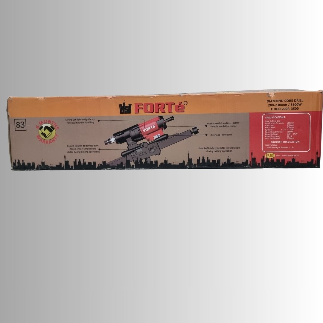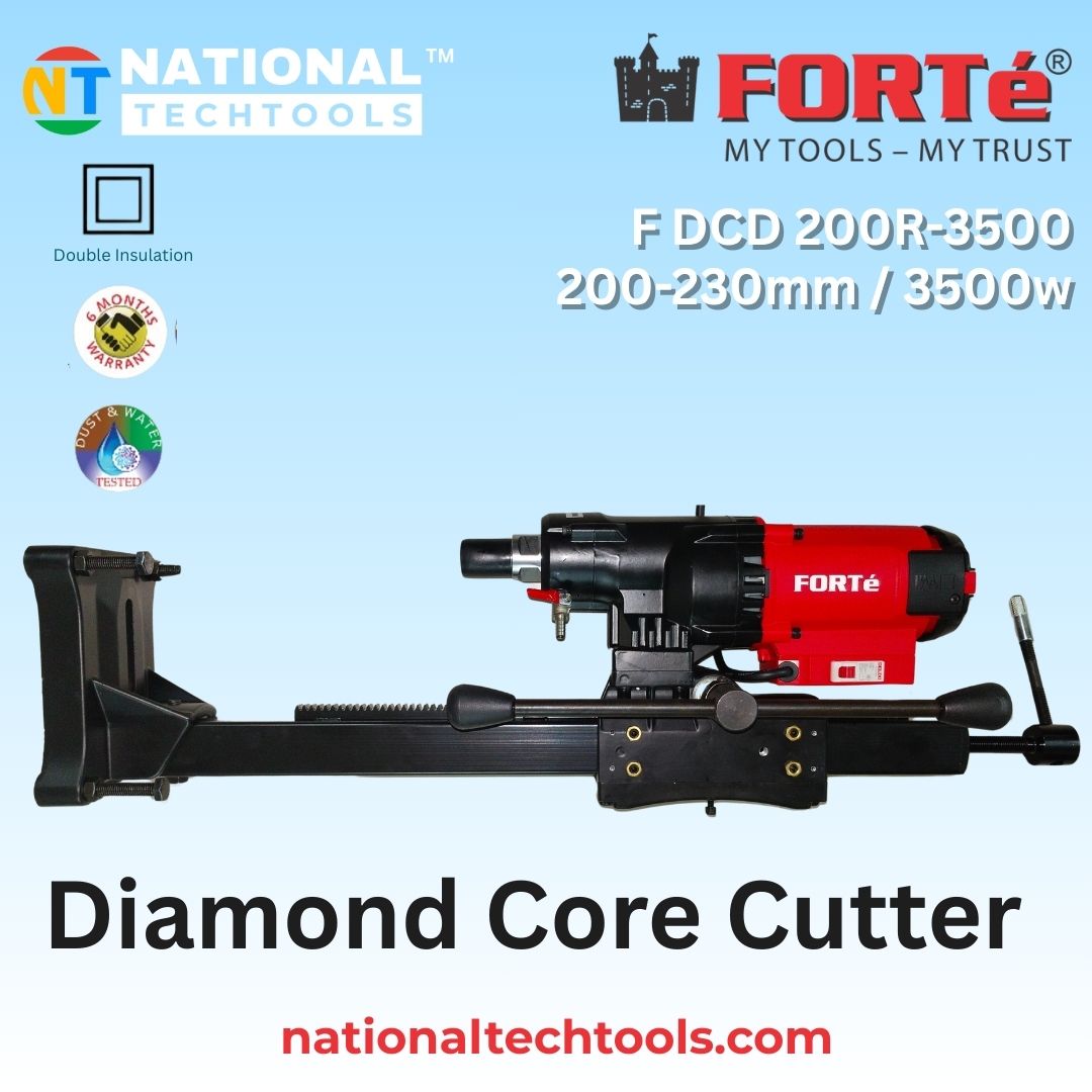 The FORTe F DCD 200R-3500 Diamond Core Cutter Machine is engineered for professionals who demand power, accuracy, and reliability in intensive drilling operations. Its 3500W high-torque motor enables smooth and efficient drilling through RCC, concrete, brick, and stone, making it ideal for construction and industrial use.
