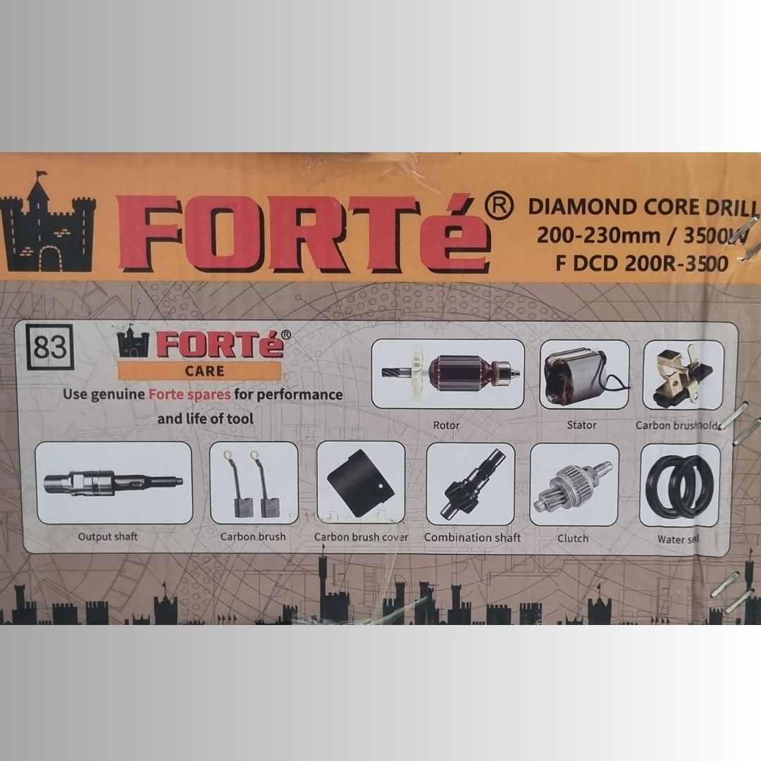 FORTe F DCD 200R-3500 Diamond Core Cutter Machine | 3500W Heavy-Duty Concrete & RCC Drilling | 200–230mm Core Bit Capacity | Double Insulation, Overload Protection, Double Clutch