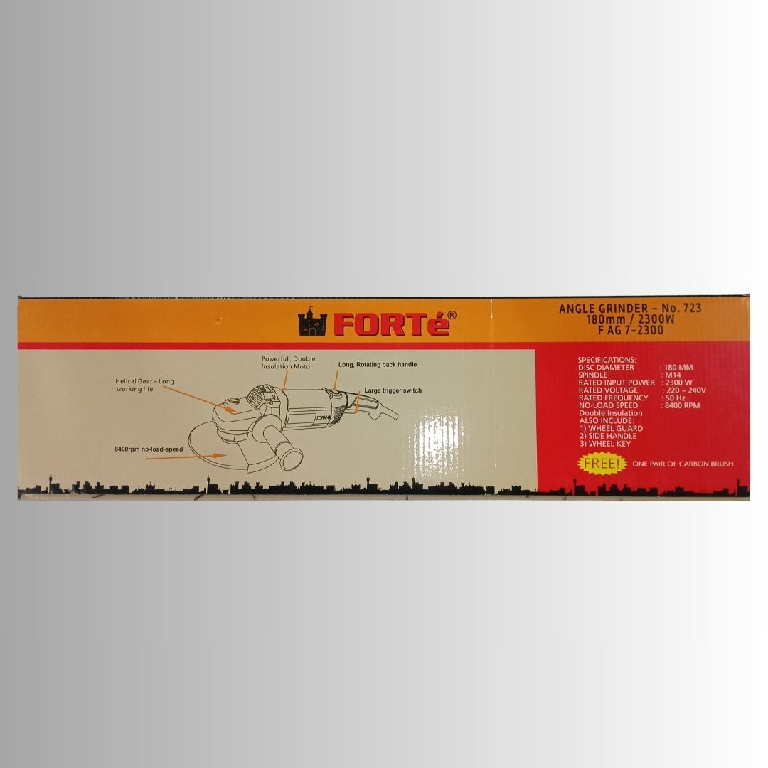The Forte FAG 7-2300 Angle Grinder is built for high performance and durability in demanding working conditions. Powered by a robust 2300W motor, this grinder is suitable for heavy-duty cutting, grinding, and surface finishing tasks across metal fabrication, construction, and workshop applications.