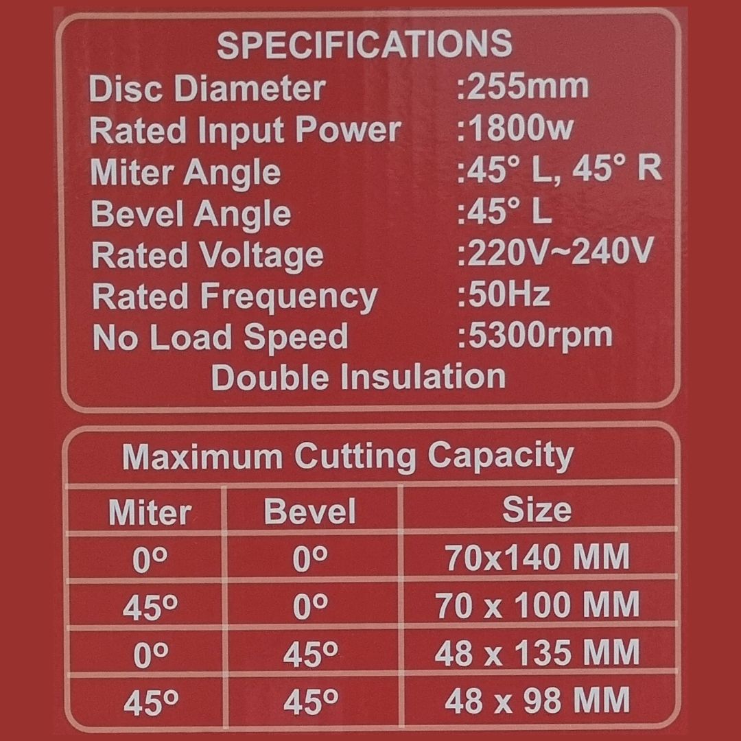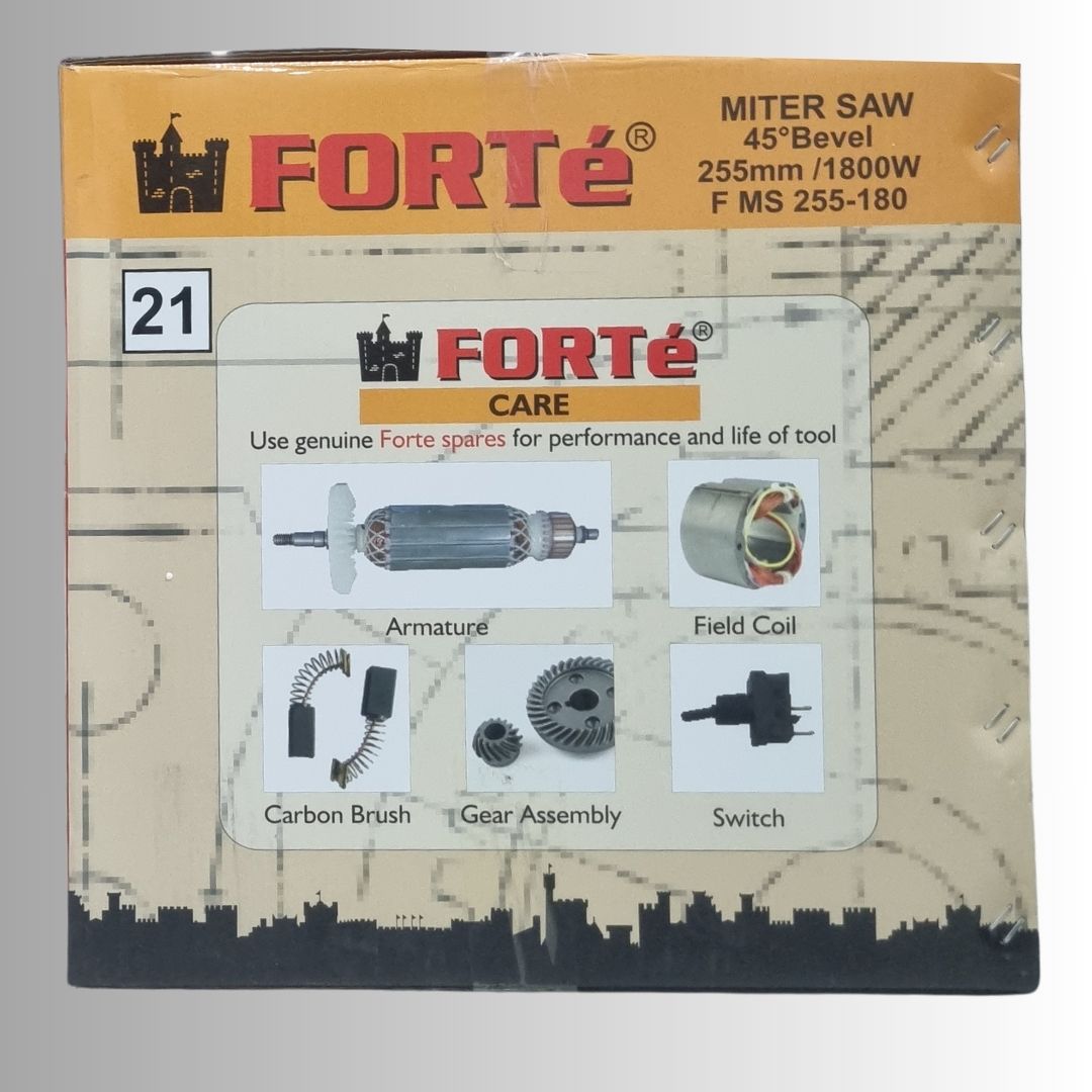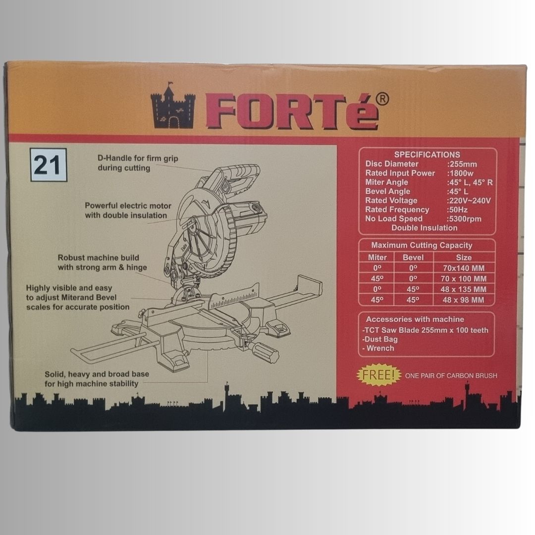 FORTÉ 255mm FMS 255-180 Mitersaw 1800W, Double Insulated, 5300 RPM, 45° Left/Right Miter & 45° Bevel Cutting, Includes 255mm TCT Blade
