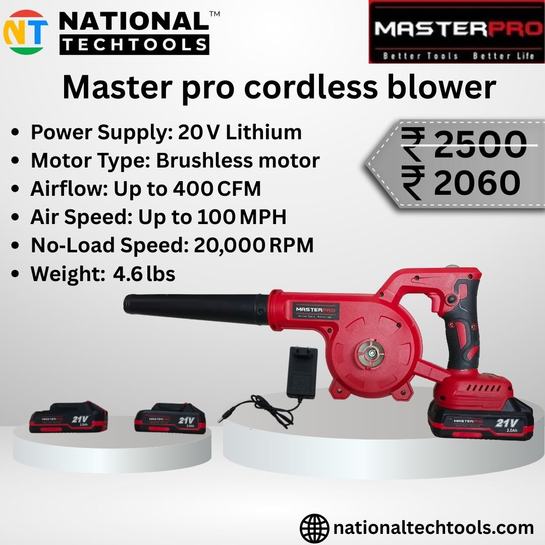 Tackle yard work like a pro with the Master Pro Cordless Leaf Blower – the perfect blend of power, portability, and performance. Designed for both homeowners and professionals, this high-efficiency blower delivers powerful airflow to clear leaves, debris, and grass clippings from driveways, decks, patios, and other outdoor spaces with ease.