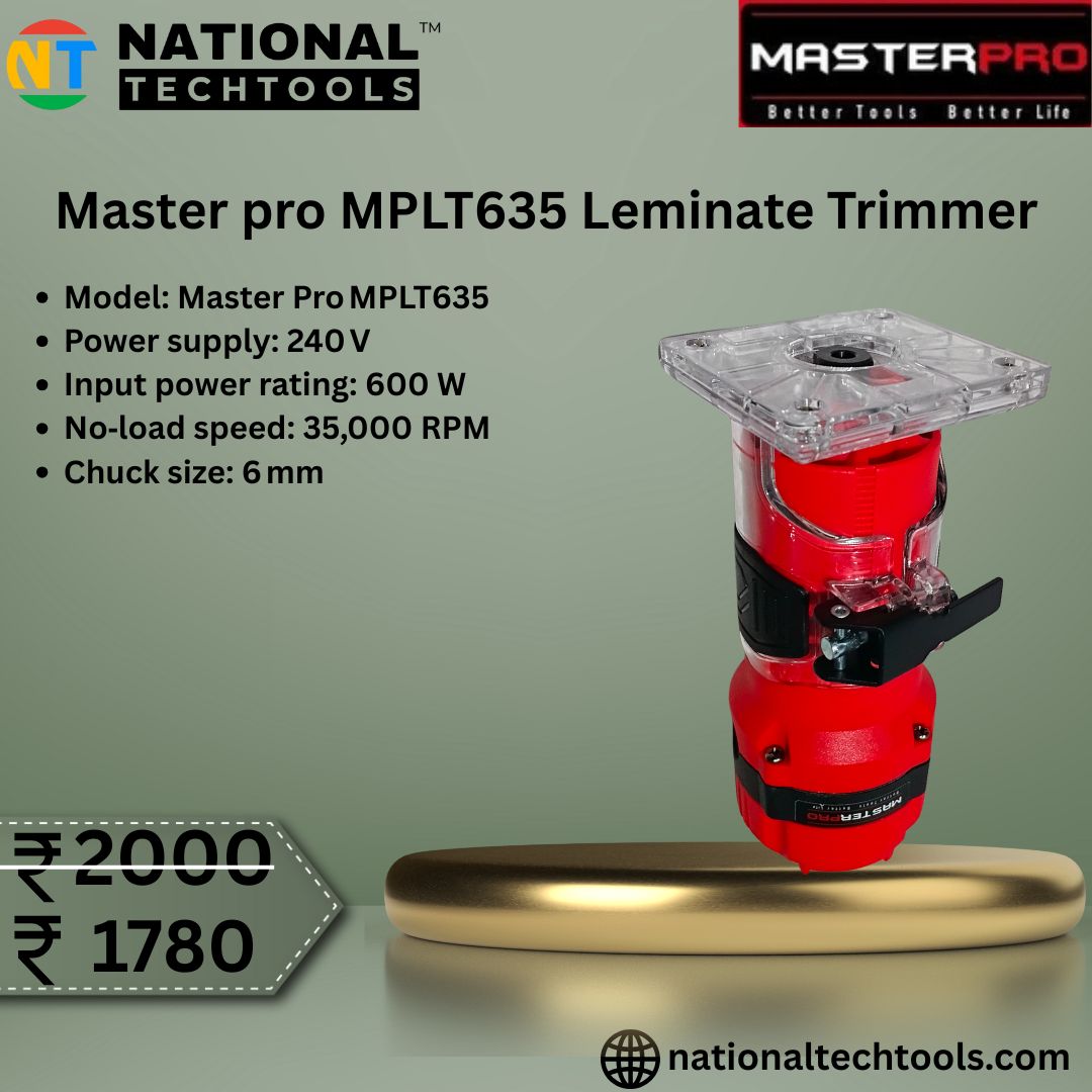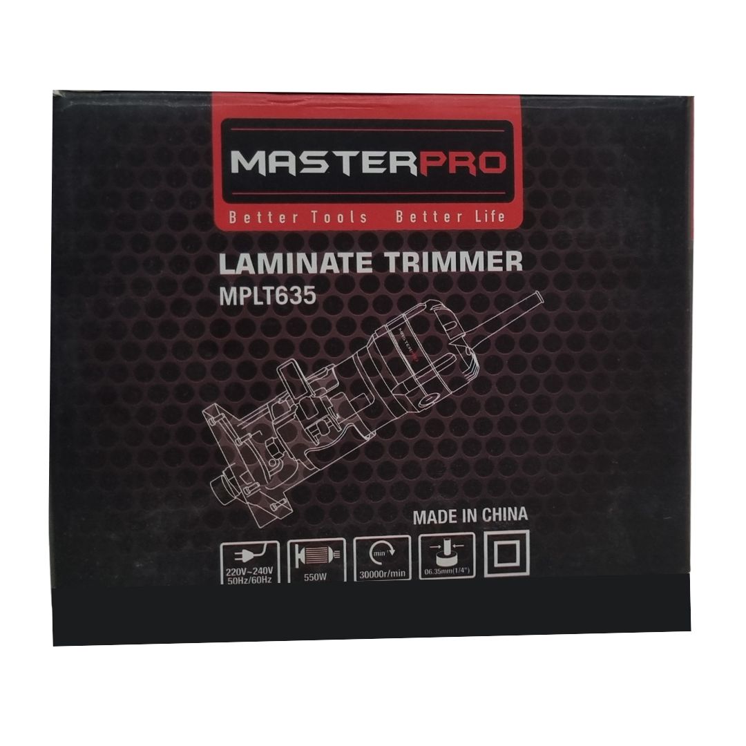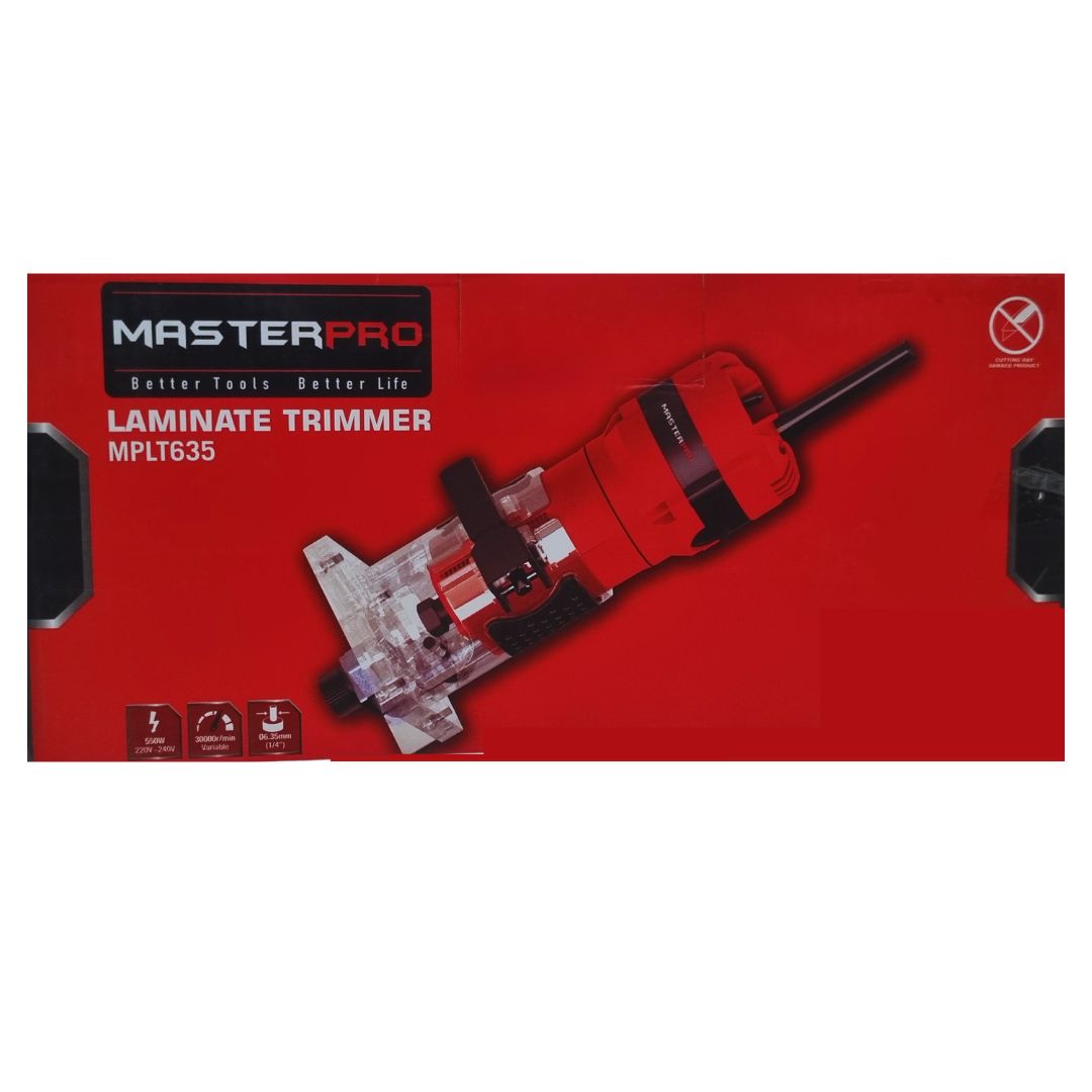 The Master Pro MPLT635 Laminate Trimmer is the perfect tool for woodworking professionals and DIY enthusiasts who demand precision, power, and control. Designed for smooth trimming, edging, and light routing tasks, this compact yet powerful trimmer features a 530W motor that delivers up to 30,000 RPM—ideal for working with wood, laminate, plastic, and similar materials.