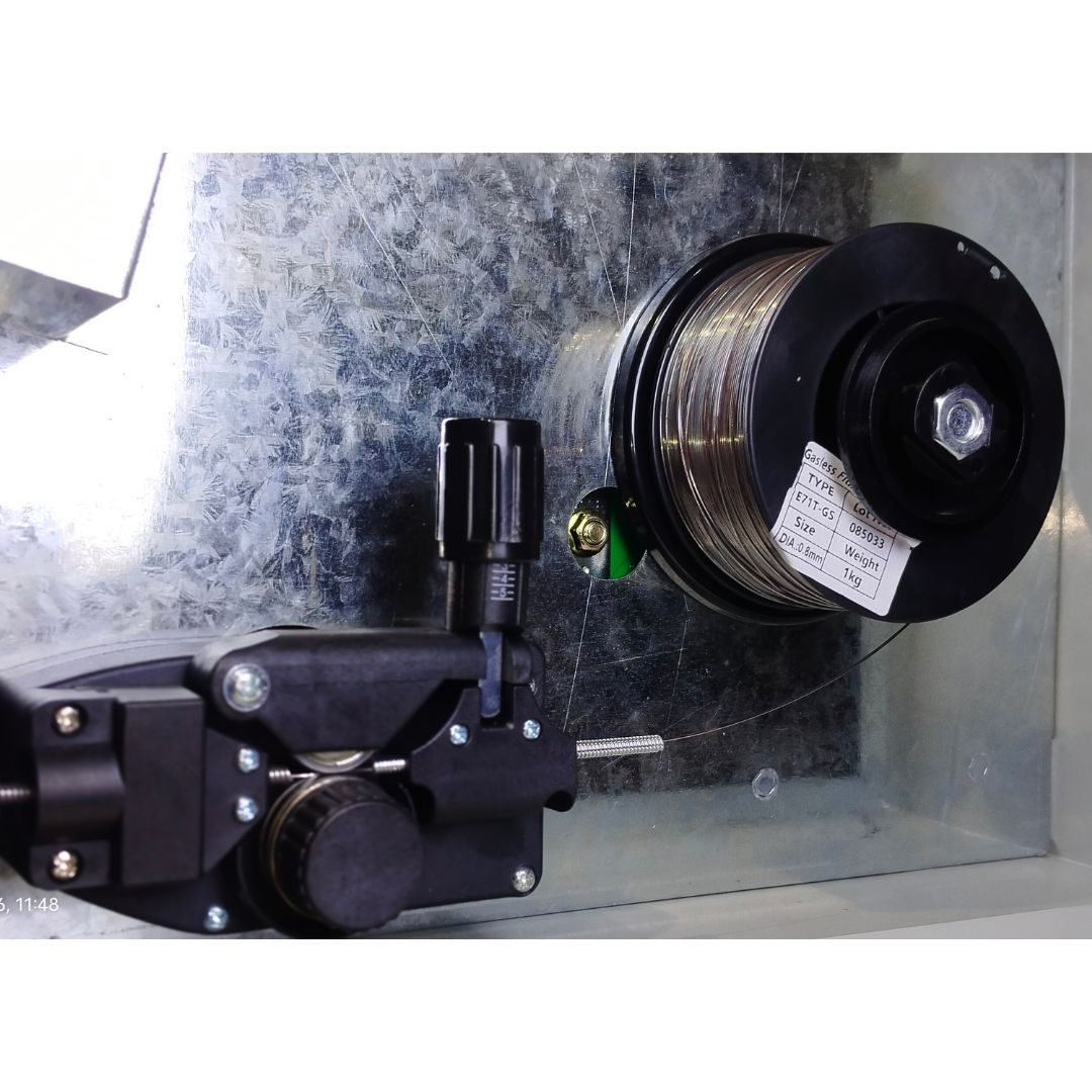 With a 200 Amp output capacity, this welding machine is capable of handling a wide range of welding tasks, from light fabrication work to demanding industrial applications. It supports 0.8 mm to 1.0 mm MIG wire, including both solid wire (with gas setup) and flux core wire (gasless setup), offering flexibility based on your working requirements.