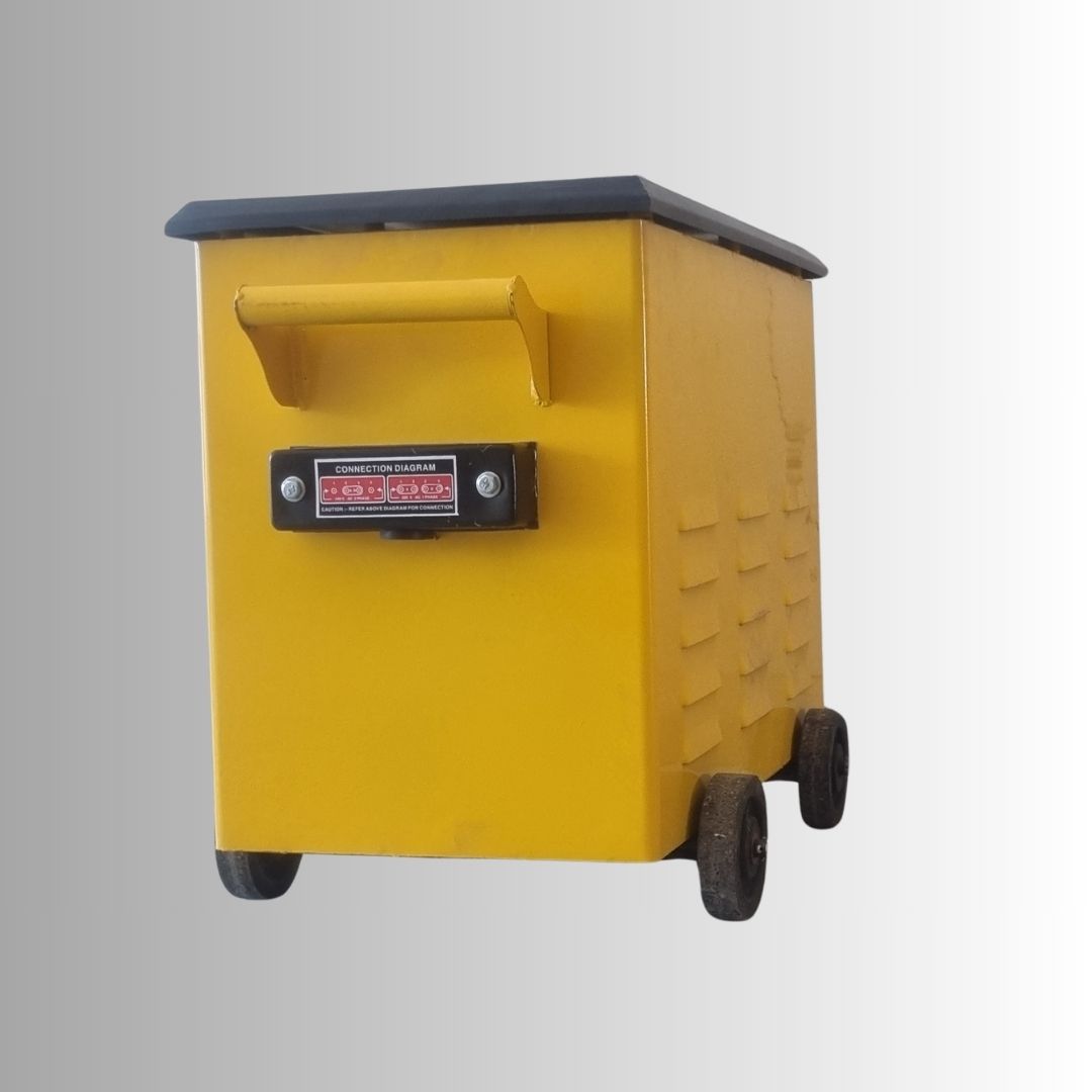 Featuring multiple current selection points, it allows accurate control over welding output for different electrode sizes and materials. The rugged metal body, smooth wheel-mounted design, and robust internal components make it suitable for workshops, fabrication units, and maintenance operations.