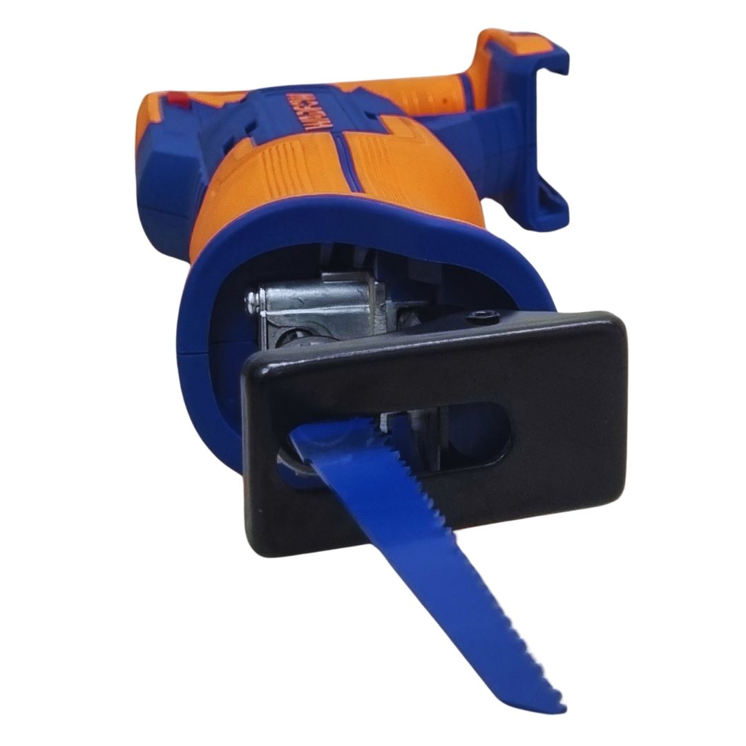 Its compact and ergonomic design allows easy handling in tight spaces, while the reciprocating blade action ensures fast and aggressive cuts through a variety of materials. Ideal for professionals and DIY users, this saw is suitable for construction, plumbing, electrical, and workshop applications.