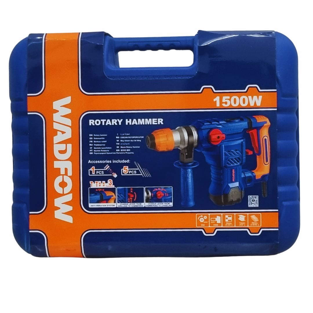 The WADFOW WRH2D32 1500W 3-26 Rotary Hammer Drill is engineered for demanding construction and renovation work. Equipped with a high-performance 1500W motor, it provides strong impact force for fast and efficient drilling in concrete, stone, and brick.